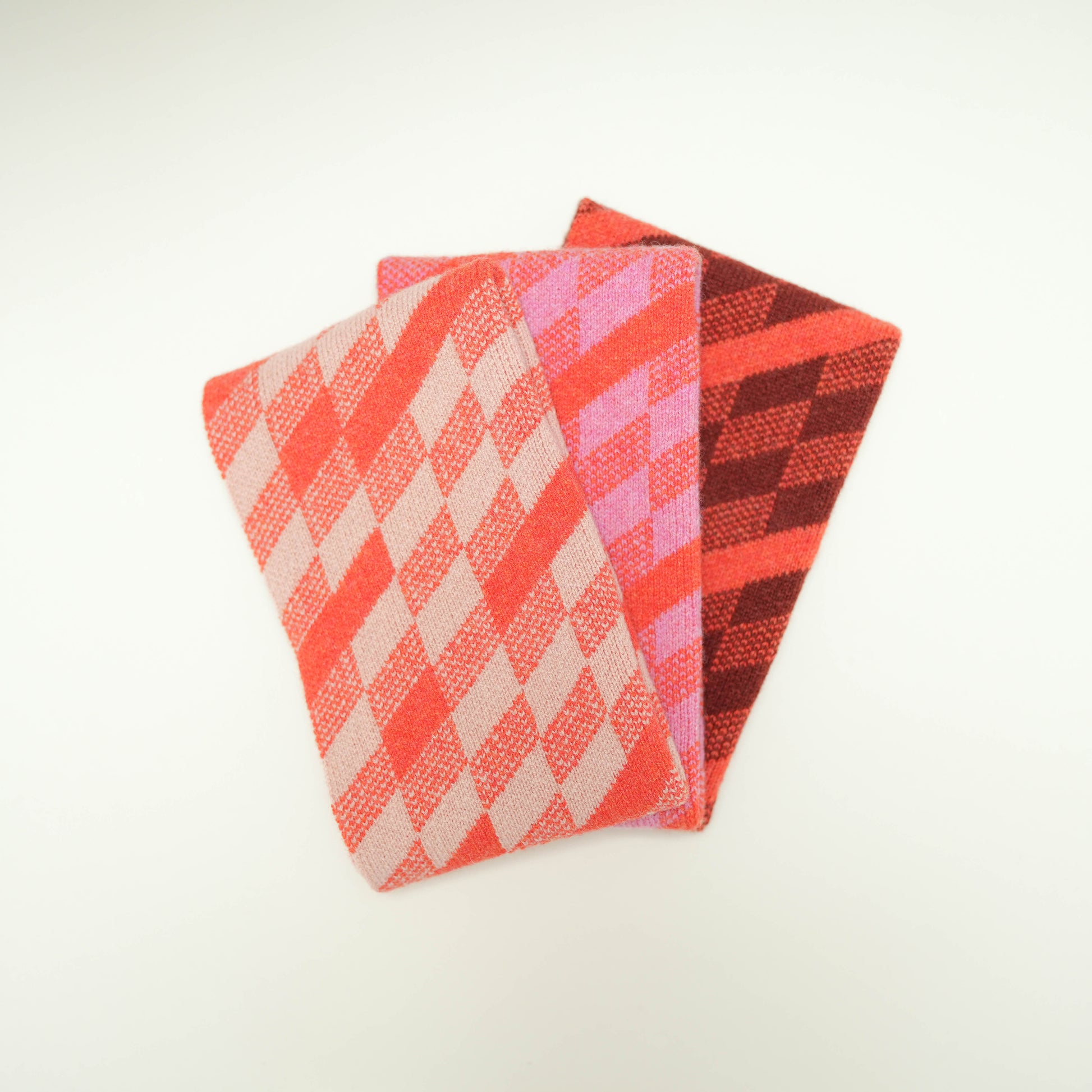 The scarf is intended to be folded over to provide extra warmth and so the patterns are repeated on the inside fold.